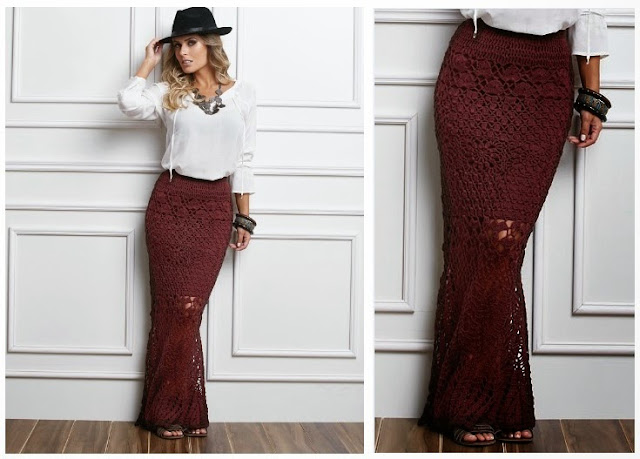 Frente e costas – São trabalhadas juntas. Comece pelos motivos. Faça uma corr. de 8 p. feche em círculo e trabalhe o motivo seguindo o gráfico. Terminado o gráfico rem.. Faça 8 motivos iguais unindo-os entre si e em círculo durante a última carr.. Corte o elástico em 4 partes iguais e una as duas pontas bem firme para não soltar. Terminado todos os motivos para a parte de cima da saia trabalhe em círculo na seguinte ordem de pontos: 10 carr. em p. fantasia nº 1 seguindo o gráfico, repita de * a * no sentido do p. (30 v.), 9 carr. em p. fantasia nº 4 seguindo o gráfico, repita de * a * no sentido das carr. (13 v.), 4 carr. em p. a., 5 carr. em p. b. e rem. Deixe o elástico entre os p. das 4 primeiras carr. em p. b.. Para a parte inferior da saia trabalhe em círculo na seguinte ordem de pontos: 10 carr. em p. fantasia nº 1 seguindo o gráfico, repita de * a * no sentido dos p. (30 v.), 6 carr. em p. fantasia nº 2 seguindo o gráfico, repita de * a * no sentido dos p. (10 v.), 3 carr. em p. de arcos seguindo o gráfico, repita de * a * no sentido dos p. (42 v.) em seguida trabalhe em p. fantasia nº 3 seguindo o gráfico. Terminado o gráfico rem..