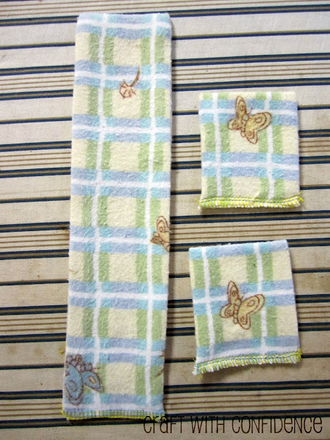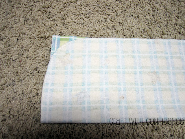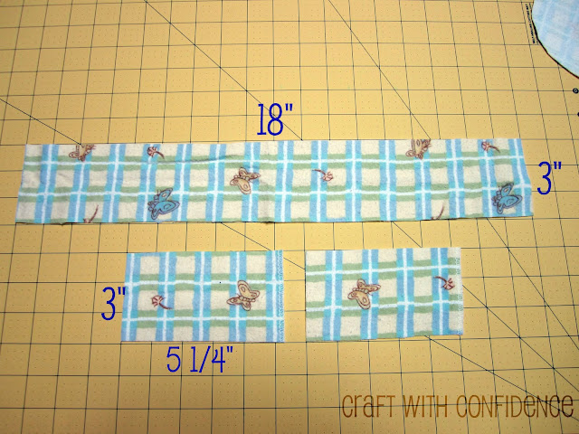 Next, cut the fuzzy side of your Velcro into two 7″ pieces and that will leave you with one 4″ piece. Round two corners on the long side on each of the 7″ pieces, so that when placed together with long sides touching, the 4 outer corners are rounded. Round all the corners of the 4″ piece.