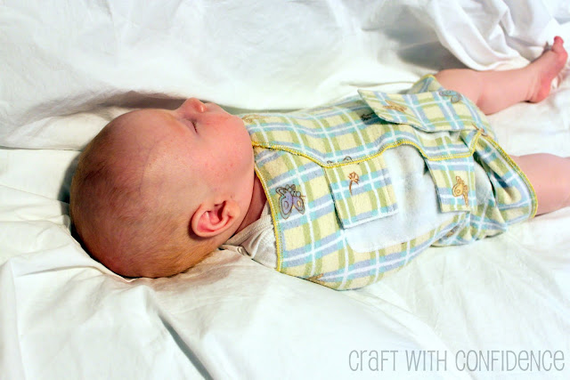 I don’t currently have a baby, so I traded my sister this Straight-Jacket Swaddler in exchange for pictures of my nephew using it!
