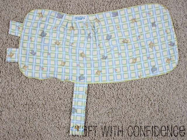 It’s nice and tight, holding in the baby with secure Velcro; with a strap between the legs to keep it from ending up around your baby’s face. And not to worry, my daughter used one I made and was secure at night, but still able to wiggle her arms out the top in the morning when she was really awake and trying.