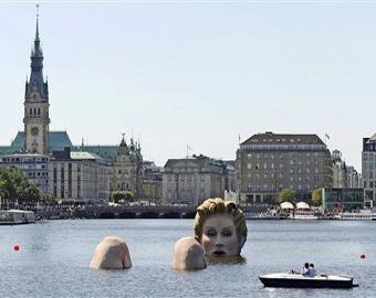 В Гамбурге появилась гигантская скульптура купающейся блондинки |