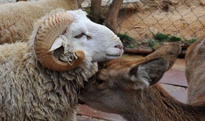 В одном из китайских зоопарков образовалась необычная пара - двухлетний баран по кличке Длинноволосый и трехлетняя самка оленя по кличке Чуньцзы стали семейной парой.