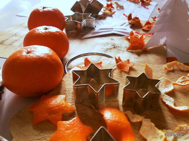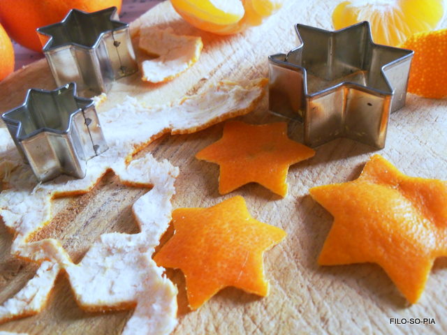 Милая идейка...Рождественские звездочки из апельсиновой шкурки.