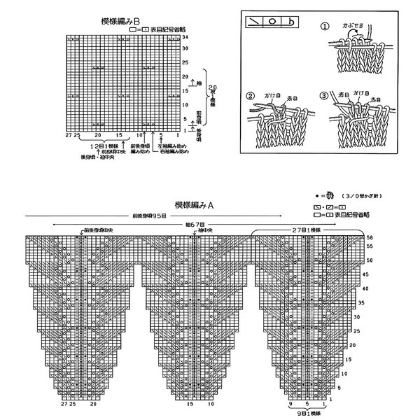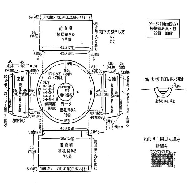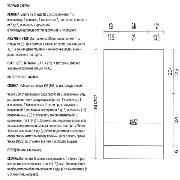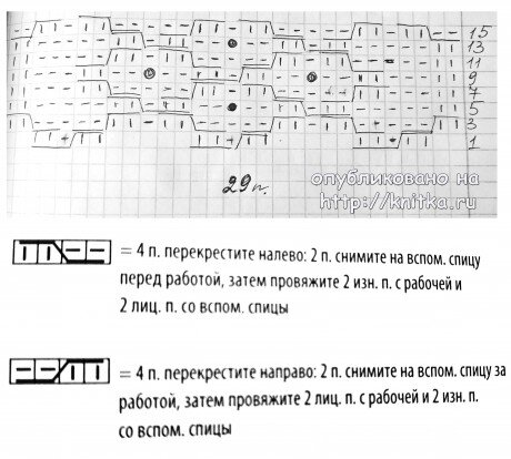 На схеме показан принцип вязания вертикального жгута, который используется для вязания детали переда.