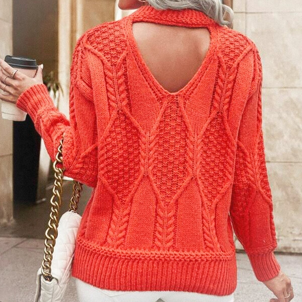 Коралловый джемпер с вырезом на спине
