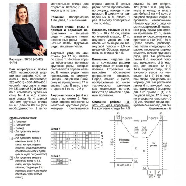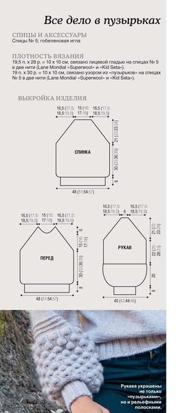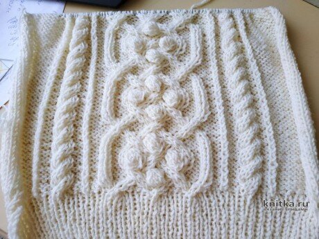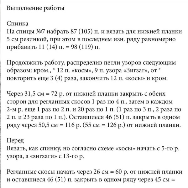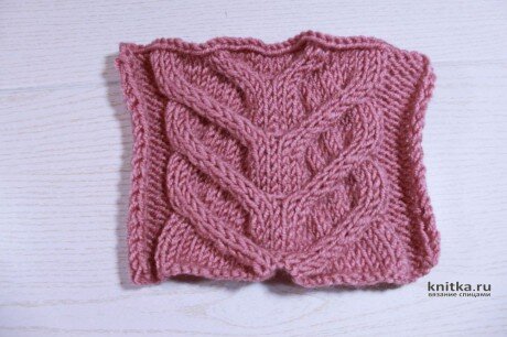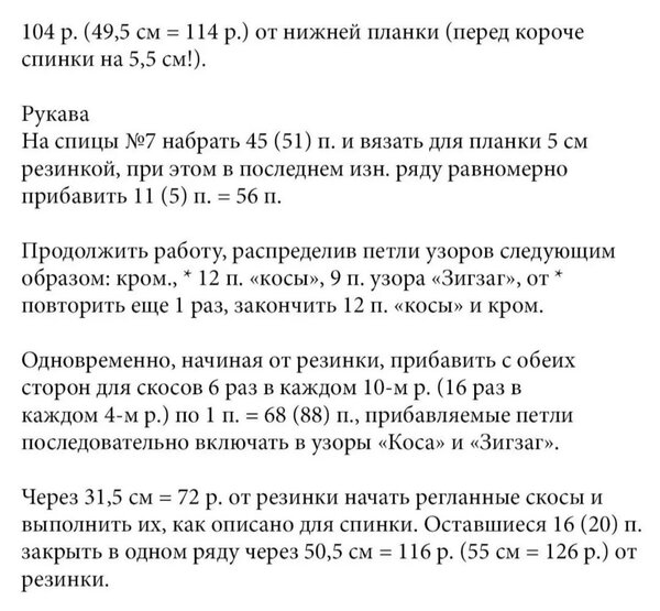 В оригинале спинка связана платочной вязкой без добавления вертикальной косы по центру, что в данной модели смотрится хорошо.