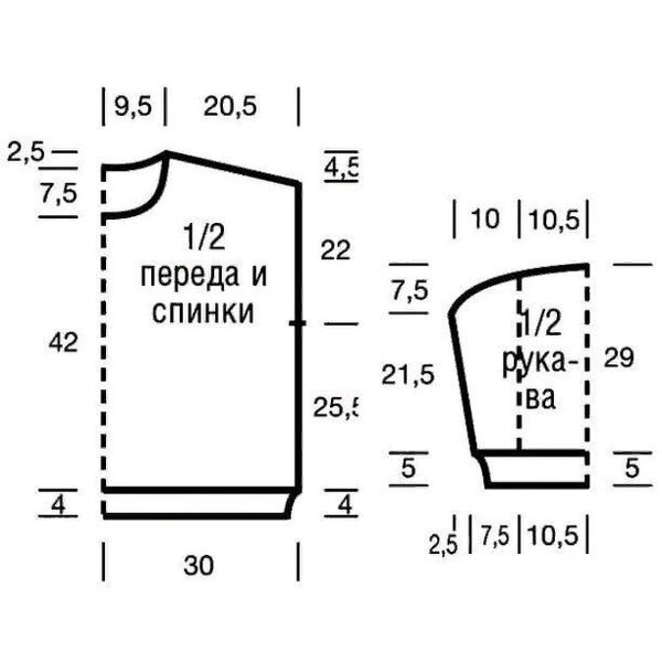 По конструкции джемпер самый простой: прямые детали переда и спинки, спущенное плечо и классические рукава, сужающиеся от основания к манжете.