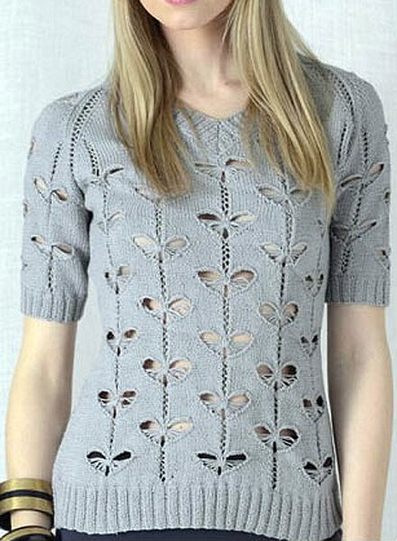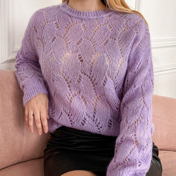 Нежный сиреневый джемпер с красивым узором, напоминающим цветки сирени (во многом, из-за цвета).