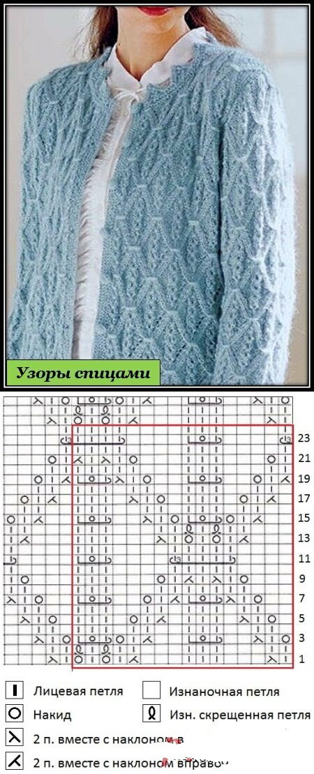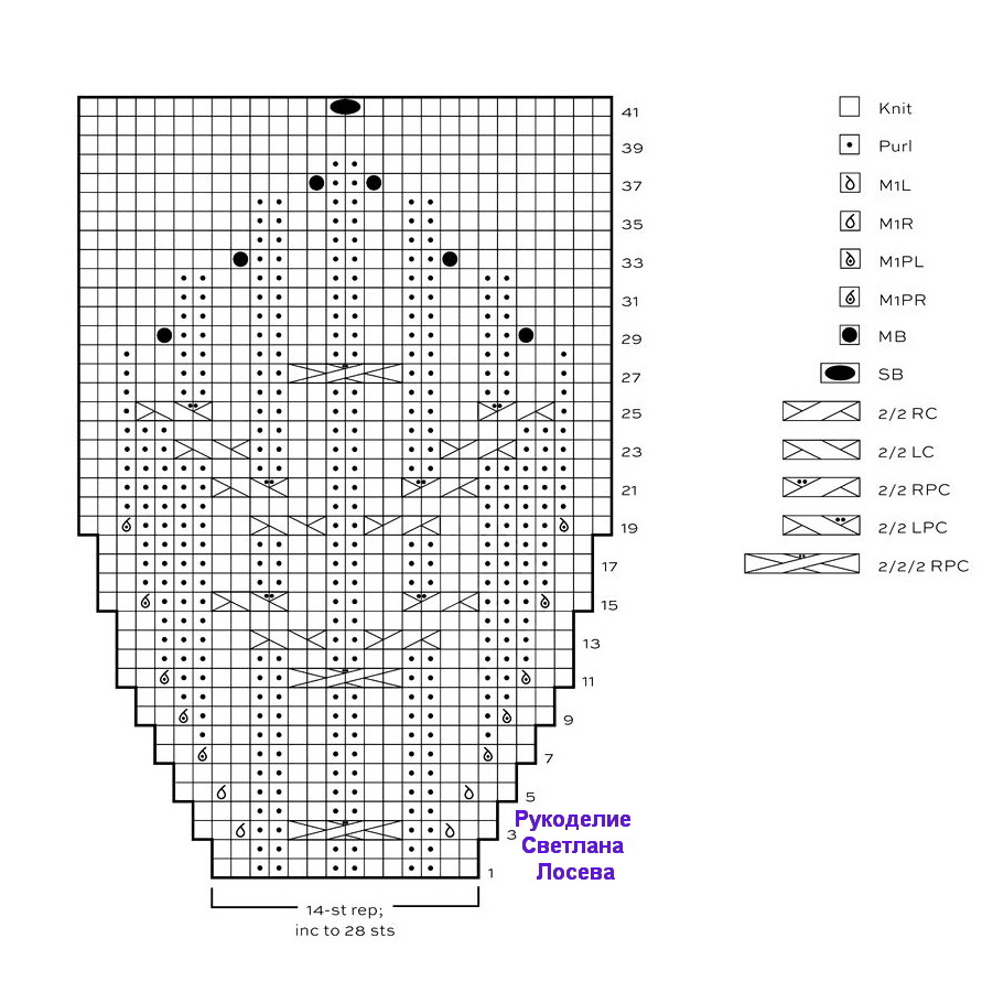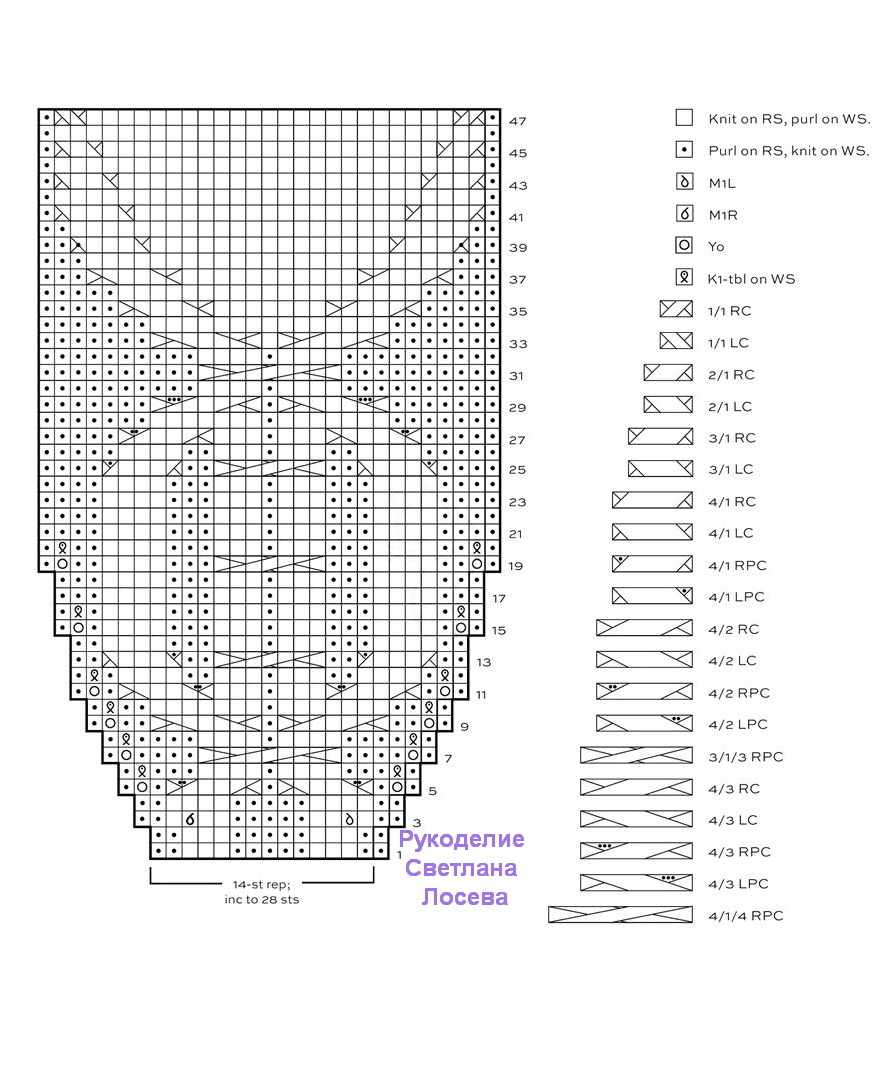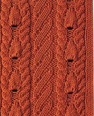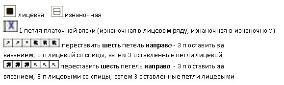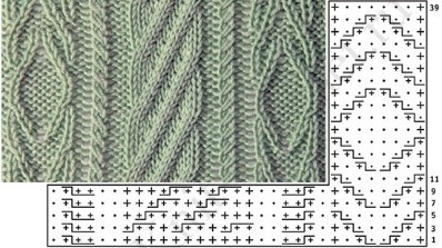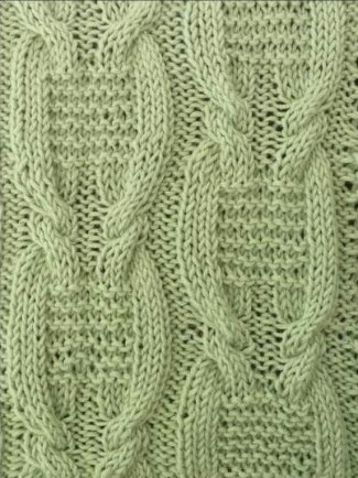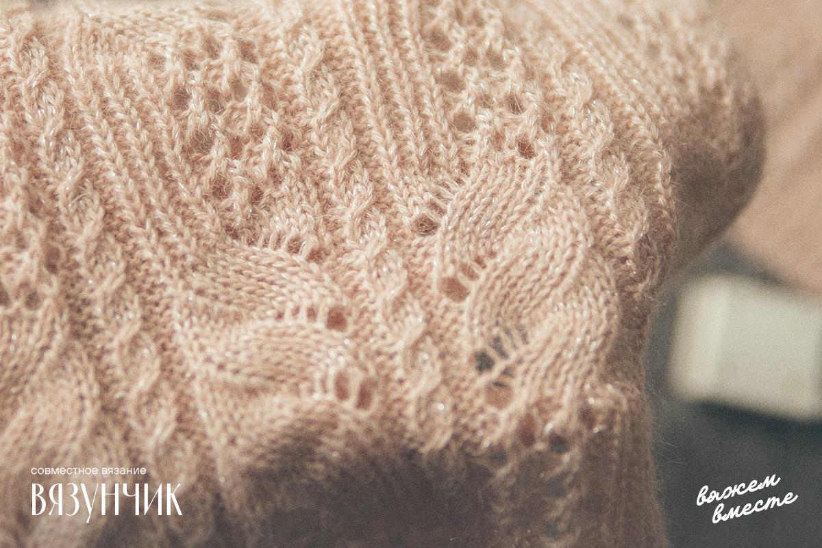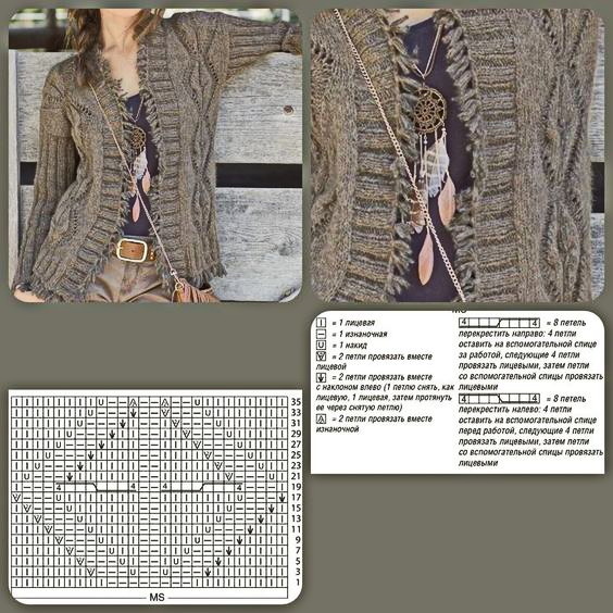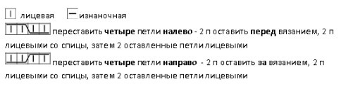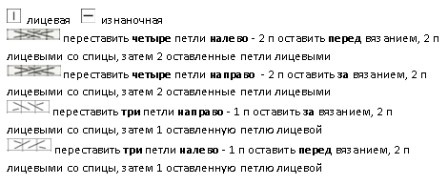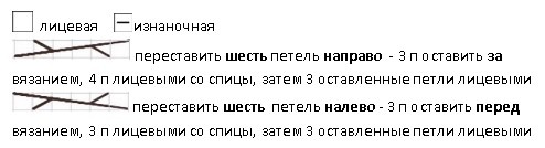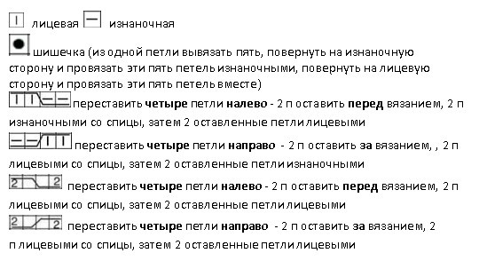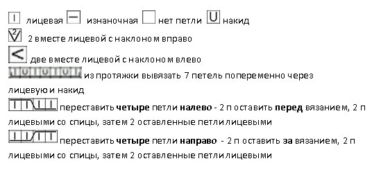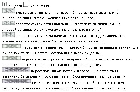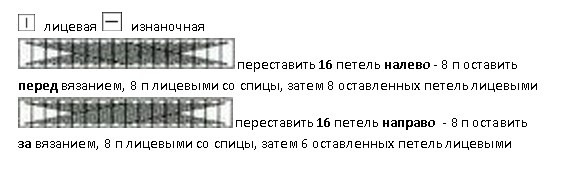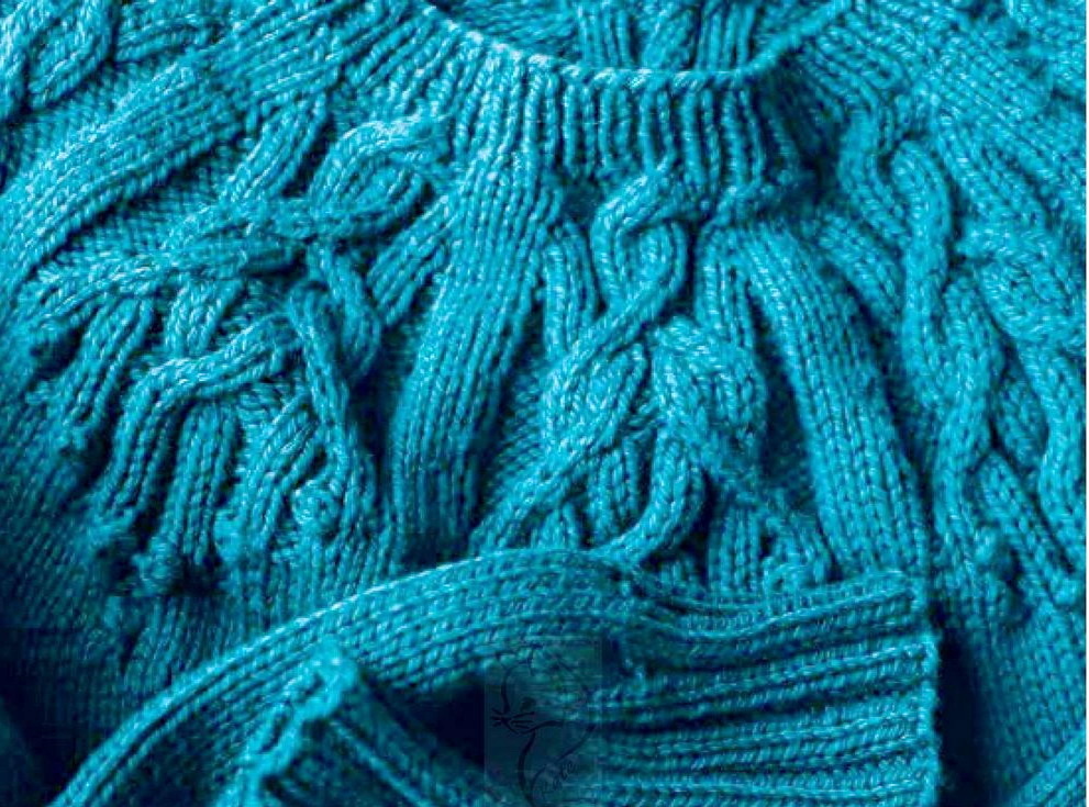 Вяжется при помощи жгутов. По центру два жгута из 4 петель, затем мелкие жгуты из 2 петель идут к регланным линиям.