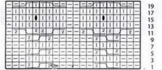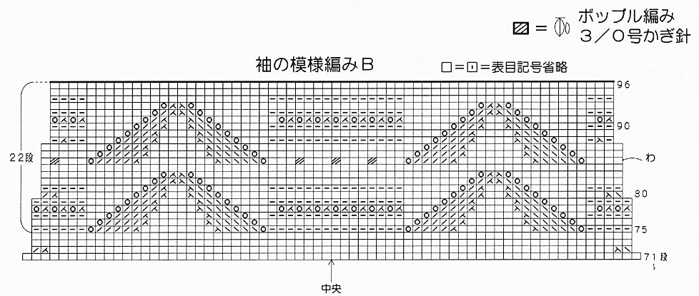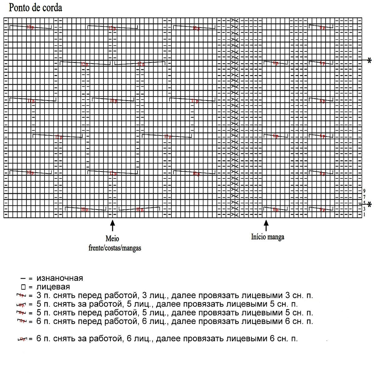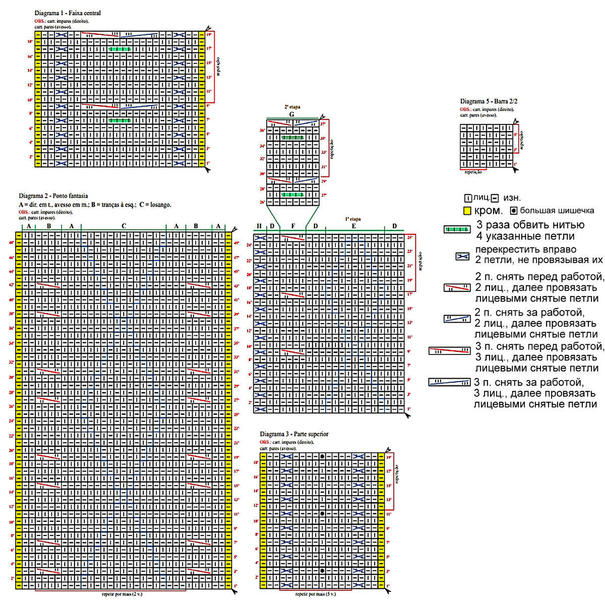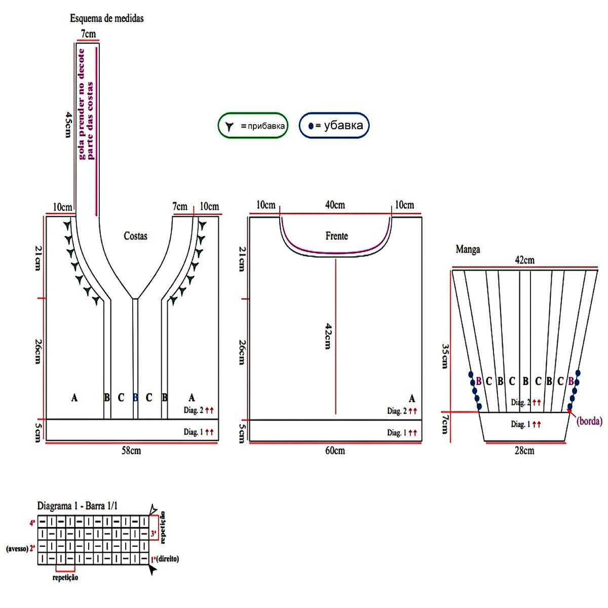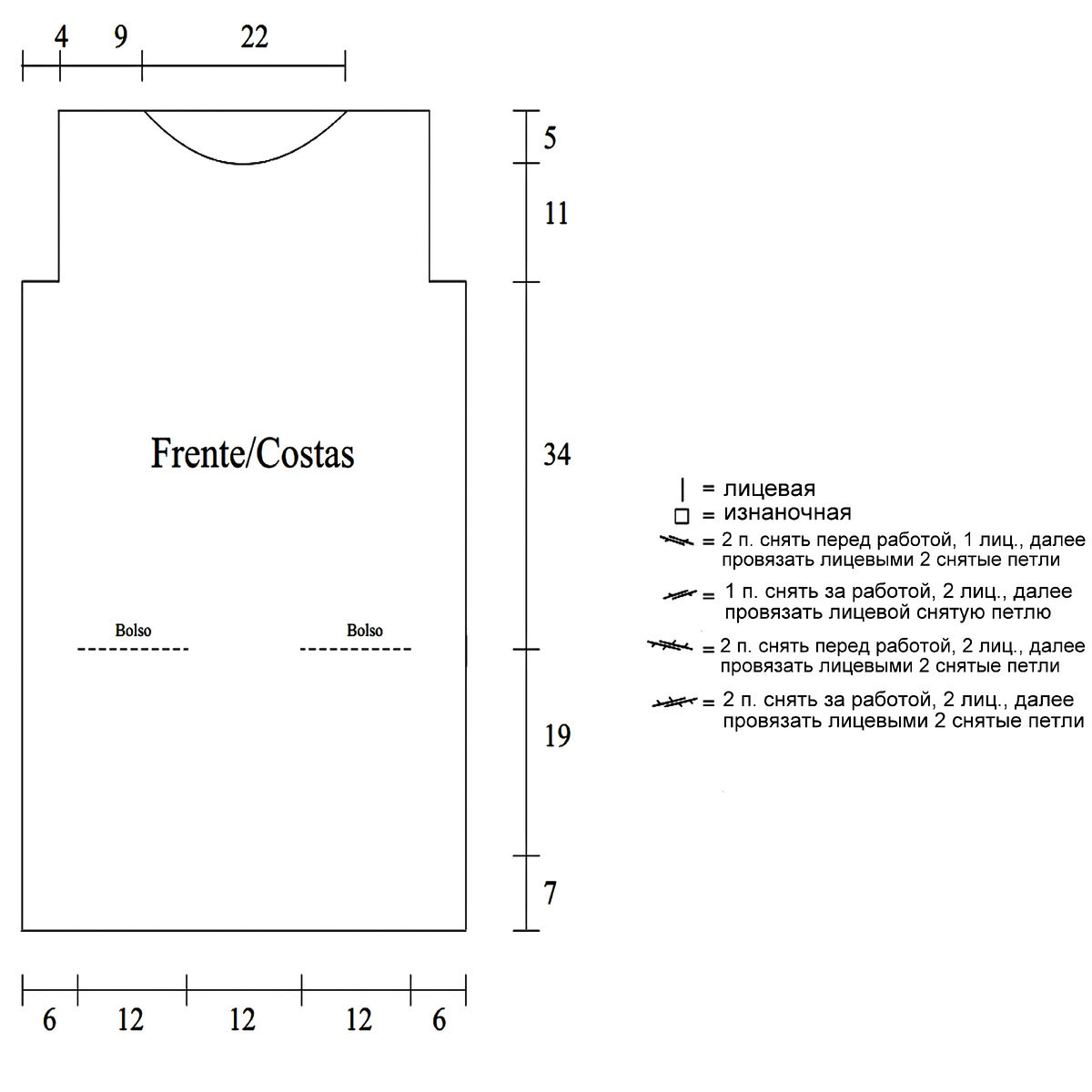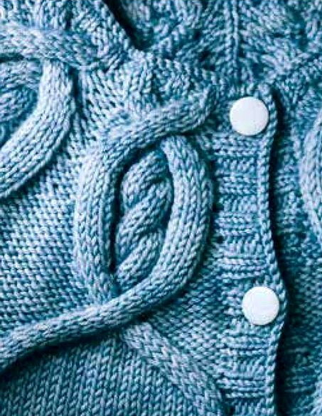 Вяжется при помощи жгутов. По центру два жгута из 4 петель, затем мелкие жгуты из 2 петель идут к регланным линиям.