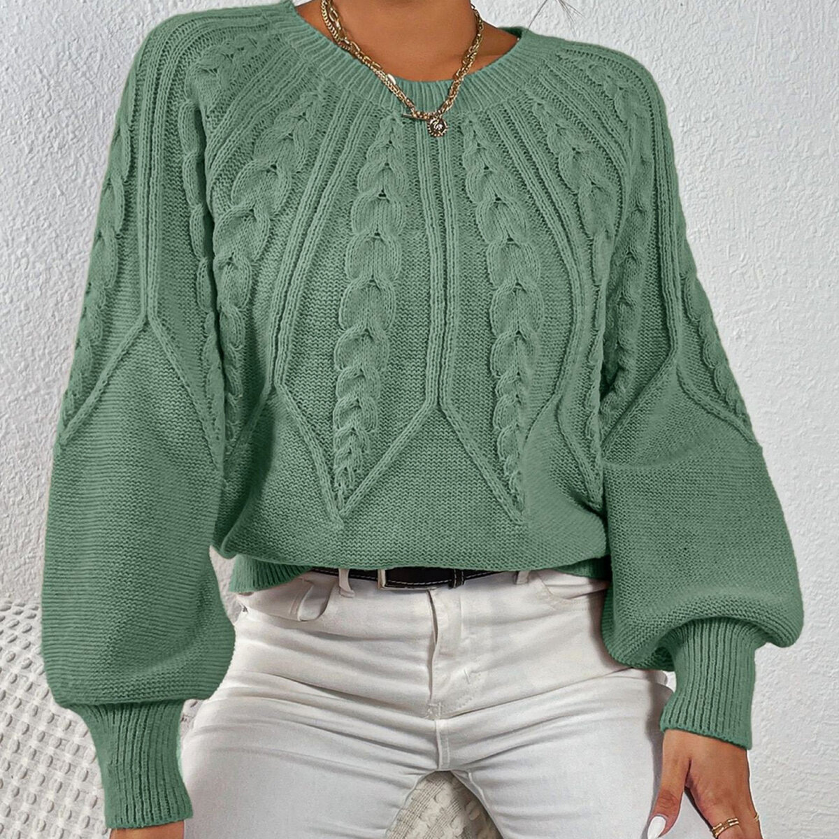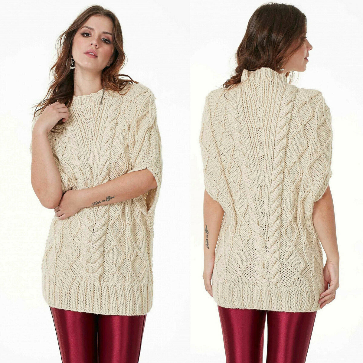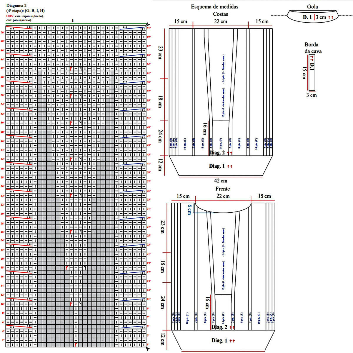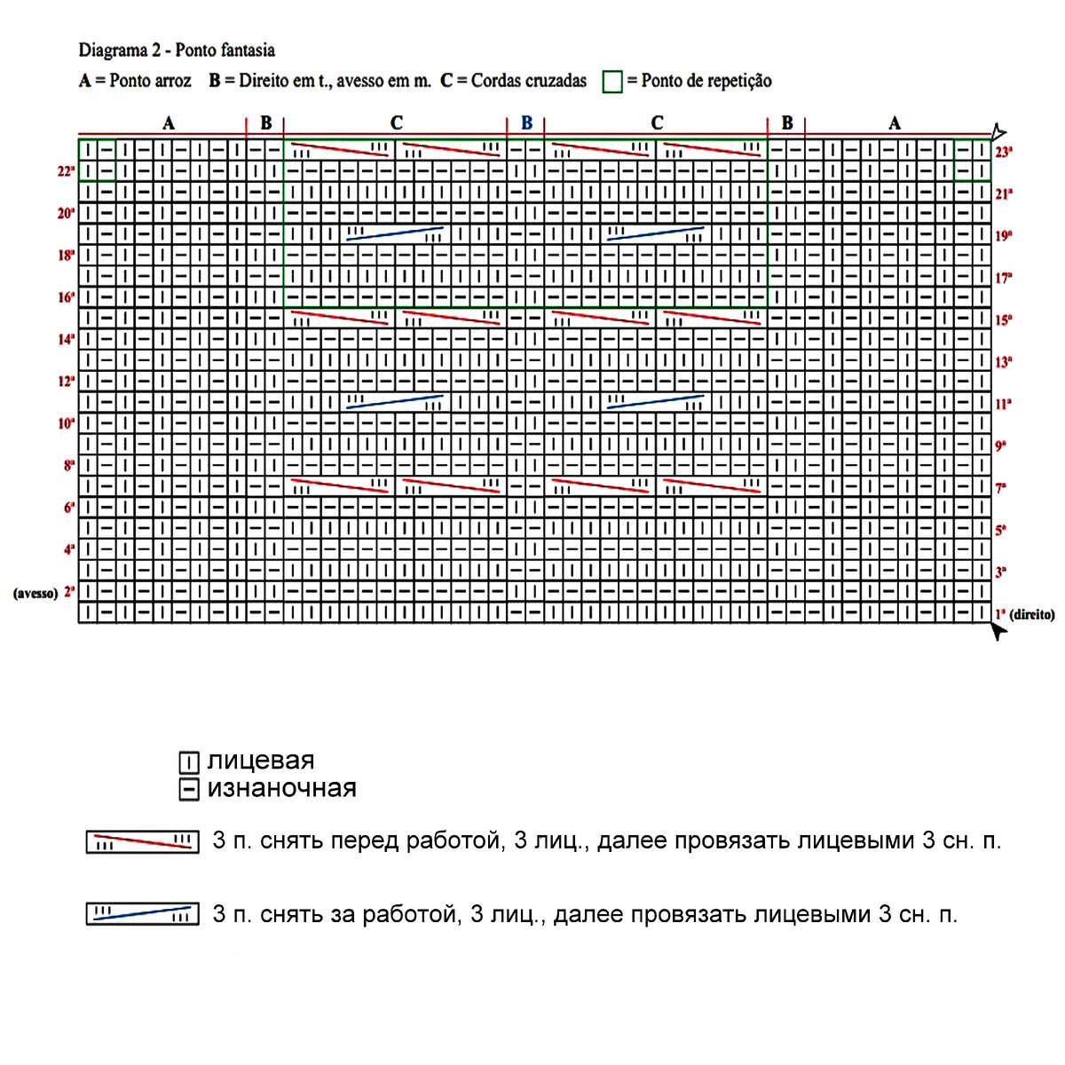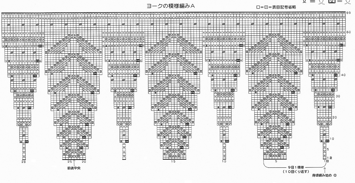 Вяжется при помощи жгутов. По центру два жгута из 4 петель, затем мелкие жгуты из 2 петель идут к регланным линиям.