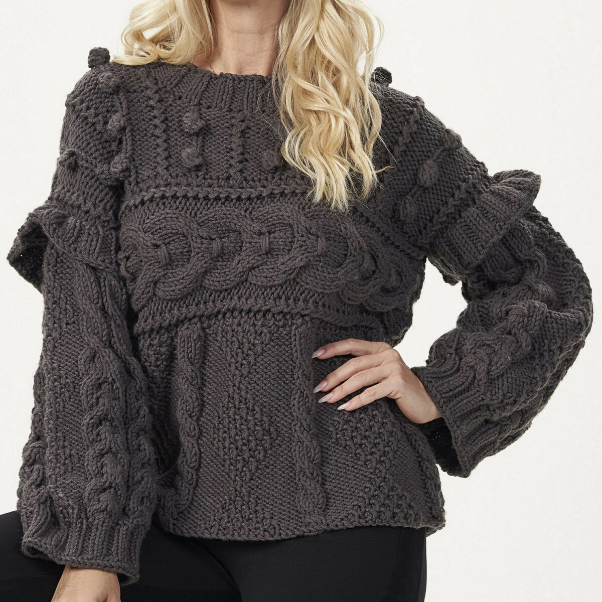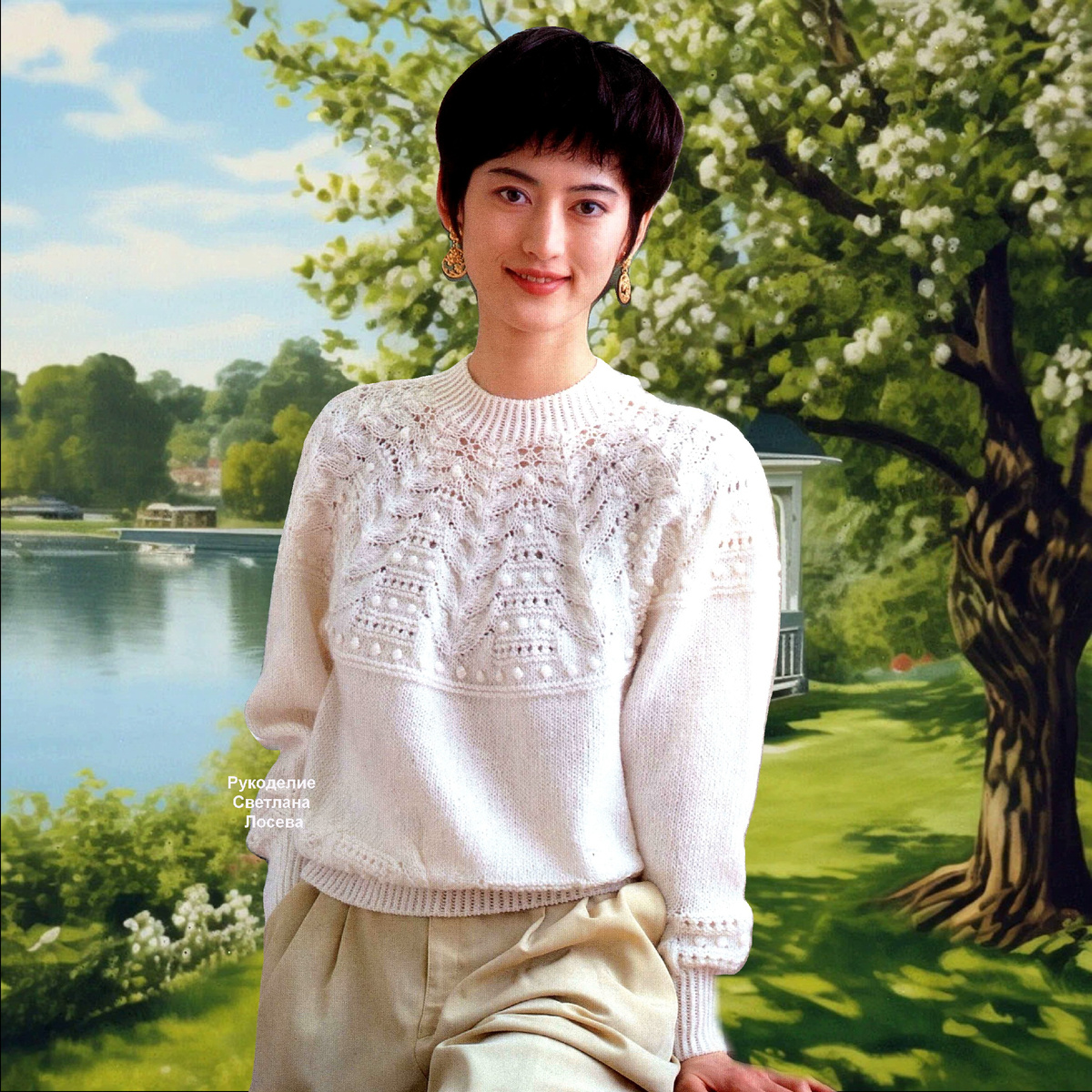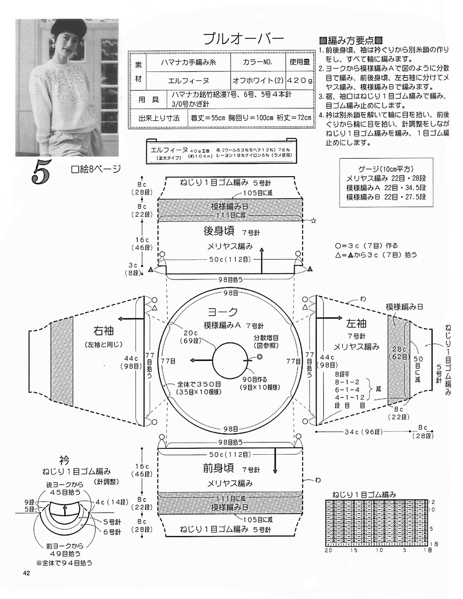 1. Этот джемпер не подходит для пряжи, которая косит. Но добавила, так как модель простая, совершенно не перегруженная узорами и безумно красивая.