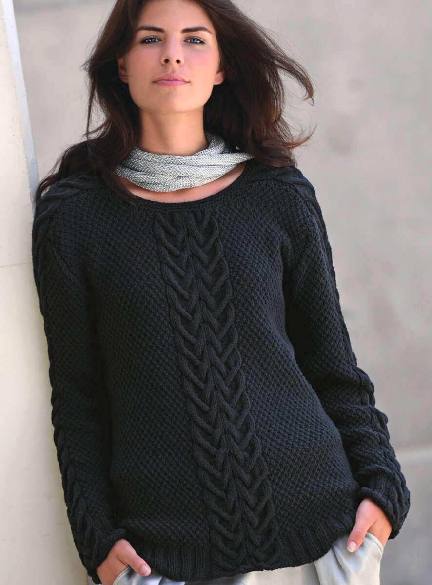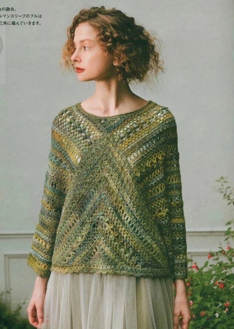 Не менее красивая кокетка и в этом джемпере! Но так как она ажурная лучше эта модель подойдет на весну. Если вы не любите шишки, то можете их не вязать большой роли они тут не играют. Я бы связала его из полушерсти или полухлопка с примерным метражом 50гр -160м, можно чуть тоньше взять пряжу.