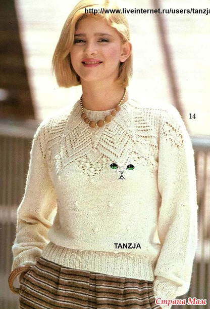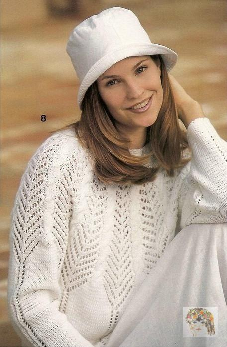 Красивый весенний джемпер! Когда ты мы с вами вязали узор с веточками и он понравился многим. А теперь добавлю в вашу копилочку джемпер с максимально похожим узором, надеюсь он вам также понравится. Из белой пряжи такой джемпер сама нежность.