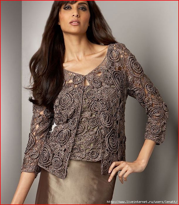 Если при этом, Вы всё же хотите выглядеть более или менее нарядно, а не как серая невзрачная мышка, то витиеватые узоры добавленные к этой блузе, придадут ей эффектность и позволят носить её не только по будням или на работу.