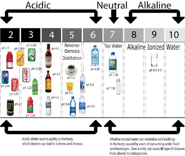 Из-за неправильного питания и употребления в пищу кислых продуктов, а также недос-татка воды происходит закисление организма. Большинство нынешних продуктов пита-ния кислые (батоны, булочки, газированные напитки, сахар и его заменители и т.д.). При закисленности организма ухудшается перенос кислорода к органам и тканям, организм плохо усваивает минералы, а некоторые минералы, такие как Ca, Na, K, Mgвыводятся из организма. От недостатка минералов страдают жизненно важные органы, повышается риск сердечно сосудистых заболеваний, снижается иммунитет, появляется хрупкость костей и многое другое. Если в организме находится большое количество кислоты и на-рушены механизмы ее вывода (с мочой и калом, с дыханием, с потом и т.д.), организм подвергается сильнейшей интоксикации. Единственный выход – это ощелачивание ор-ганизма.
