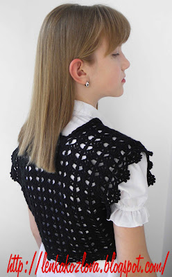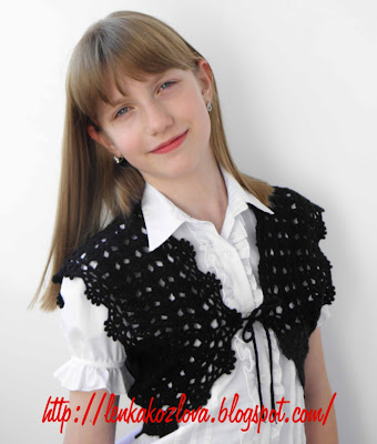 Начался учебный год у старшей дочурки. Очень мне хотелось как-то разнообразить ее школьный гардероб, но, из-за рабочих и домашних хлопот, болерошка вязалась медленно. И вот .... есть результат! Готово ажурное болеро для моей школьницы!!!