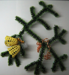 Если вязали из х/б ниточек можно накрахмалить.Я вязала из акриловой ниточка типа "ириса" с люрексом-она крахмалится очень плохо.Эти колокольчики крахмалила с помощью ПВА(1 ст.л. ПВА+2 ст.л. воды.)Сушила на 1,5 литровой пластиковой бутылке.Можно на перевёрнутой рюмке.