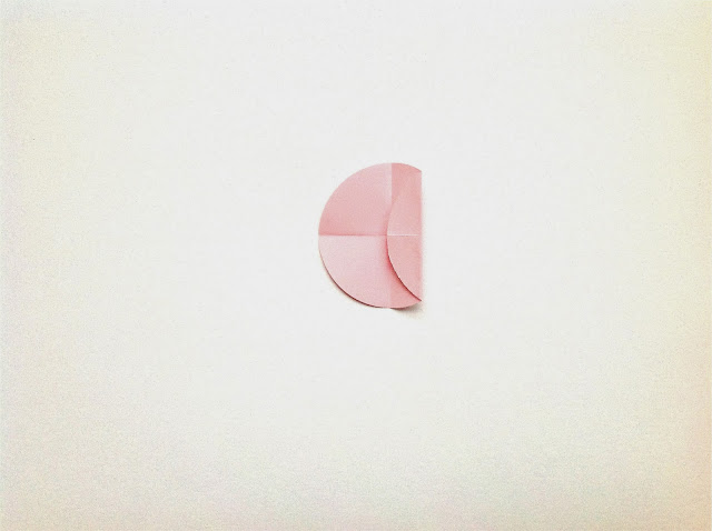 Берем разноцветную бумагу (или белую, тоже красиво будет), вырезаем из нее 20 кружочков (я вырезала с помощью фигурного дырокола). Берем кружочек, складываем пополам и еще раз пополам, чтобы получились сгибы в форме крестика. Разворачиваем. Теперь поочередно заворачиваем три стороны кружочка к центру сгиба-крестика (см.фото)