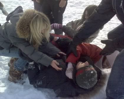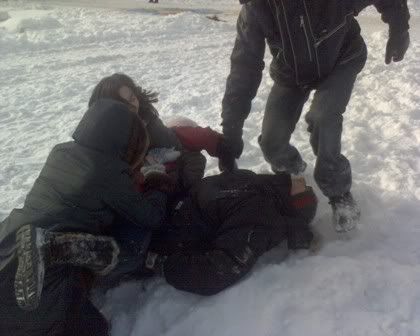 С Масленицей!) Вчера в школе праздновали. Во дворе расставили столы с блинами, пирогами на продажу, сами все нещадно пообгладывали и началось снеговаляние))) Начали это экономисты, потом наши заразились. Пряхин безжалостно сметал всех в сугробы, а самого его смогли повалить только 5 девчонок общими силами и то не с первого раза))) И еще Анька Чупова 2 раза в одиночку с ним расправилась))) Вообщем в школу мы все вернулись мокрые, замерхшие, но довольные. А дорогая Н.В послала нас дежурить, буээ.