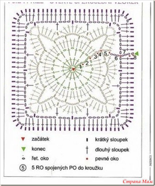 Плед из квадратных мотивов связан крючком. Схема вязания узора для пледа крючком.