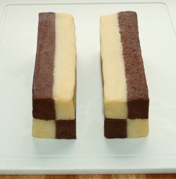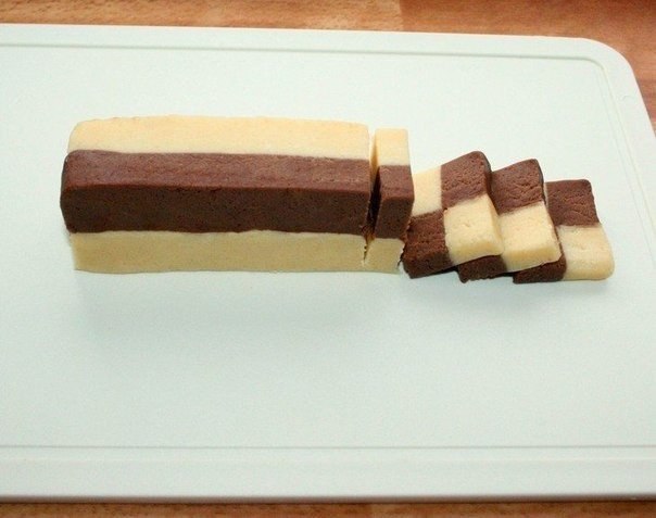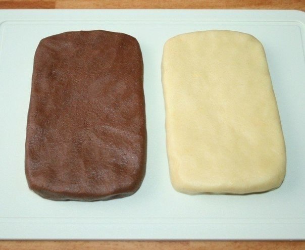 5. Светлое и темное тесто раскатать в пласты одинакового размера (14х9 см.)