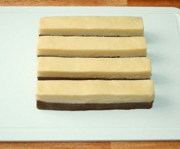 9. Пластины из двух видов теста сложить по две так, чтобы светлая полоса была на темной, а темная — на светлой.