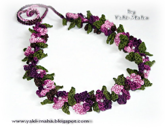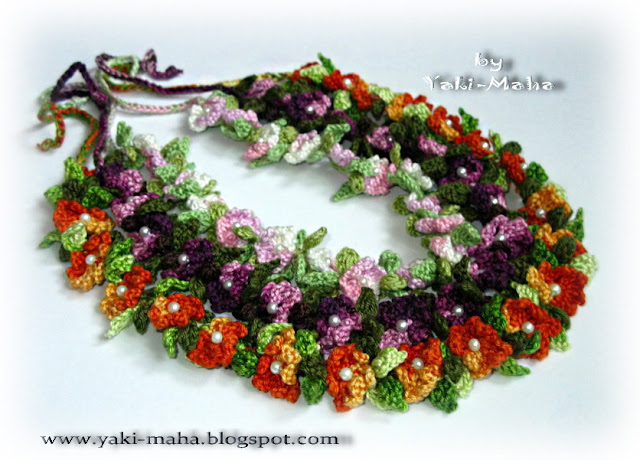 Хлопок, бусинки "под жемчуг". Длина по цветочкам 40-45 см. Возможен повтор!