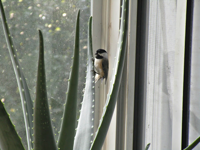 Пернатая гостья на застеклённой веранде |