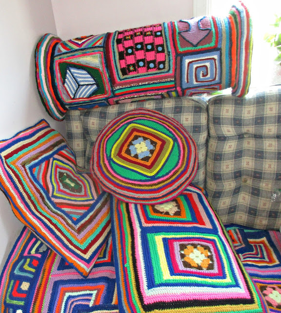 Уже есть для этого вязаный плед и 5 разноцветных подушек.