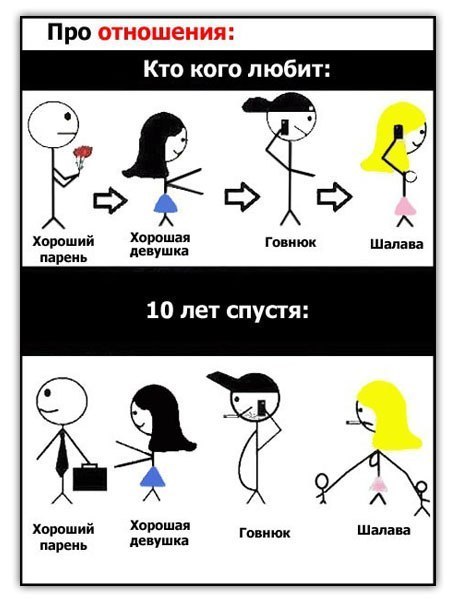 - Она не может правильно выбрать мужа - в первый раз вышла замуж по молодости или по залёту;