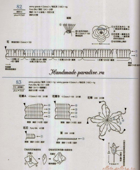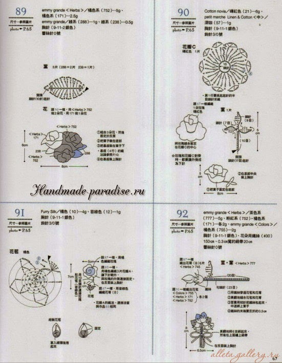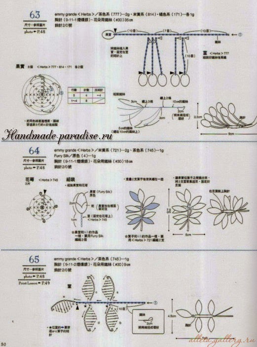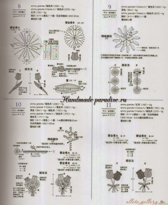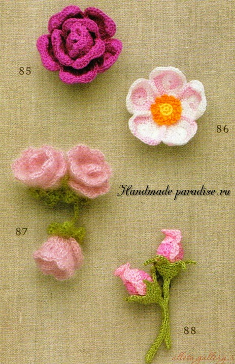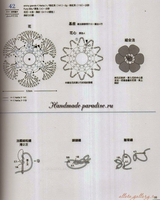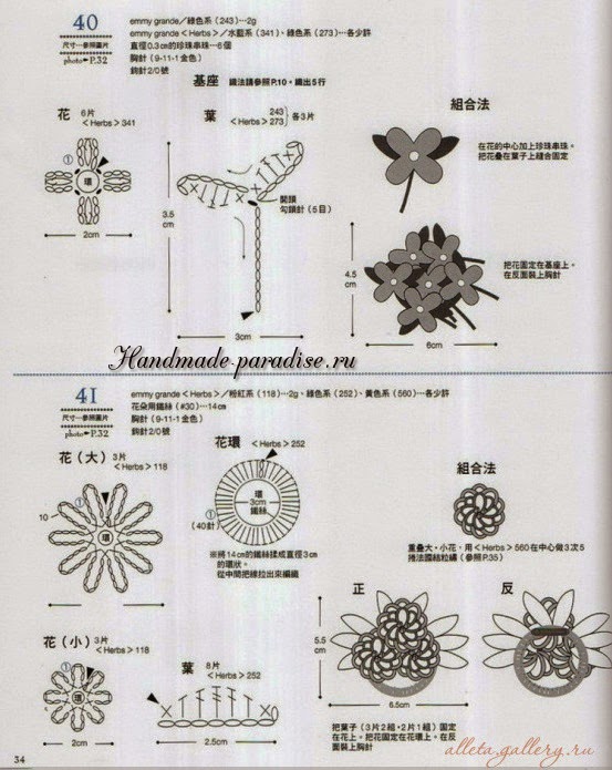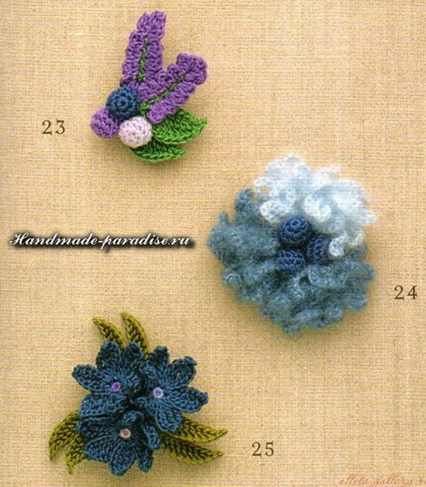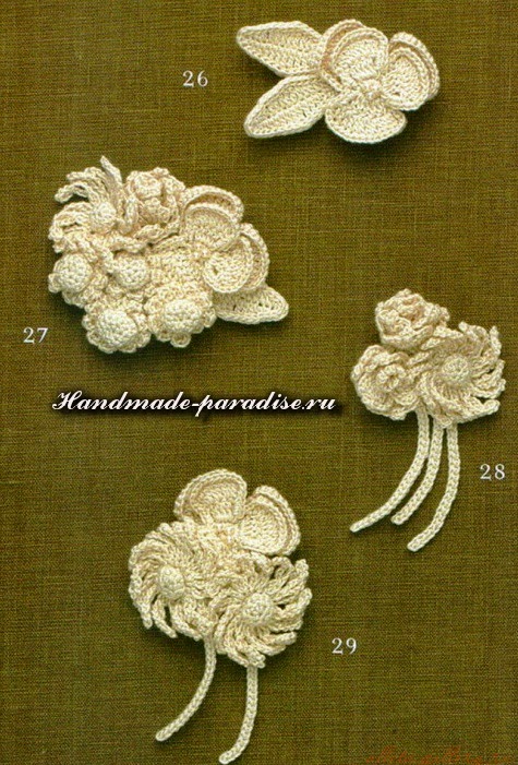 Схемы вязания веточки с цветочками (на фото под номером 28):