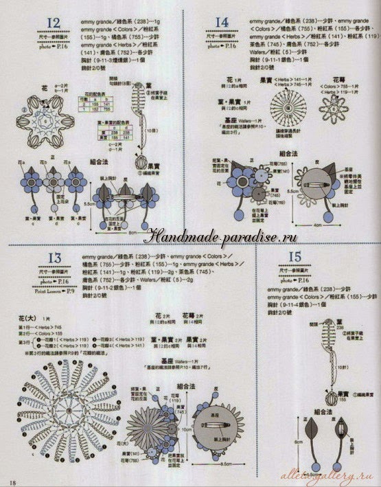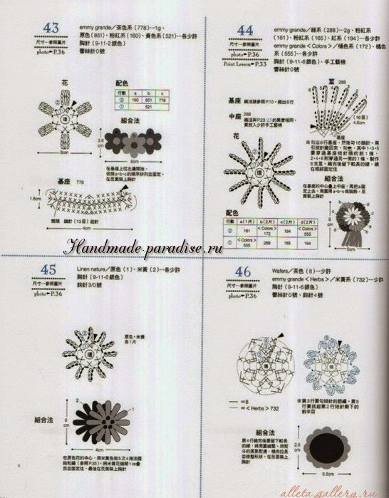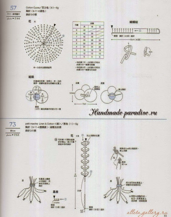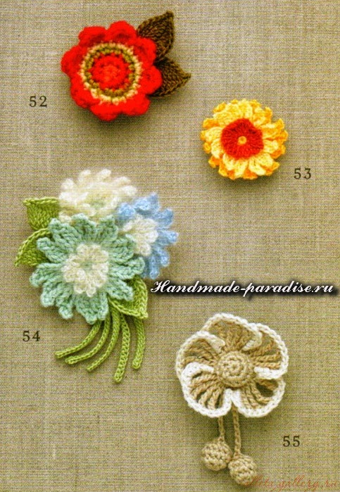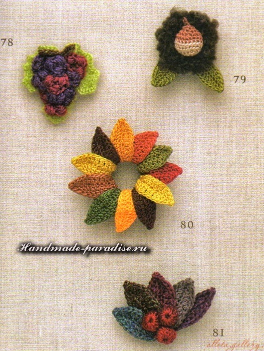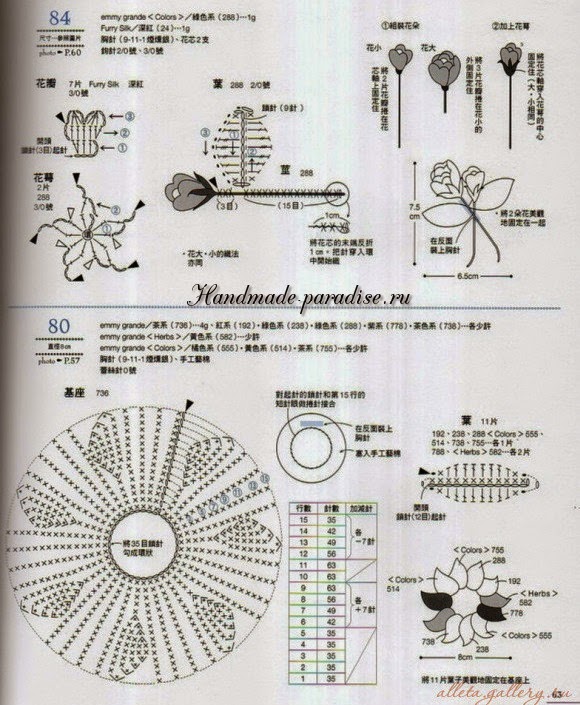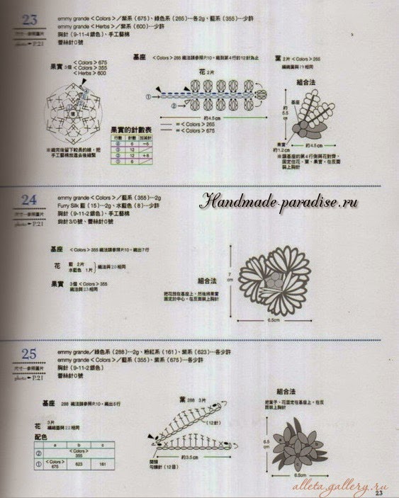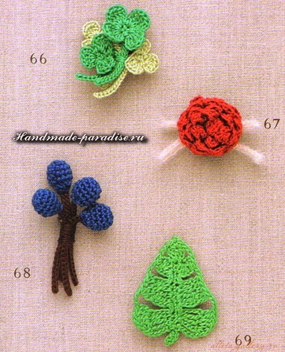 Схемы вязания веточки с цветочками (на фото под номером 28):