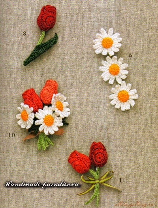 Схемы вязания крючком тюльпанов: