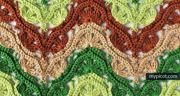 После 34-го ряда (лицевого) закрыть петли крючком, провязывая между столбиками без накидов по 12 воздушных петель.