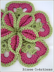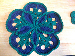 As you begin drawing the yarn through the center sc of each motif you will notice the petals forming.