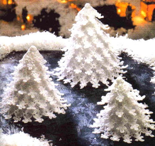 Захотелось поучавствовать в конкурсе "Модное вязание" именно с этими новогодними игрушками. Фотографии старые, но уж какие есть. Главное, настроение передается, по-моему. Игрушки связаны крючком из белого ириса, накрахмалены.