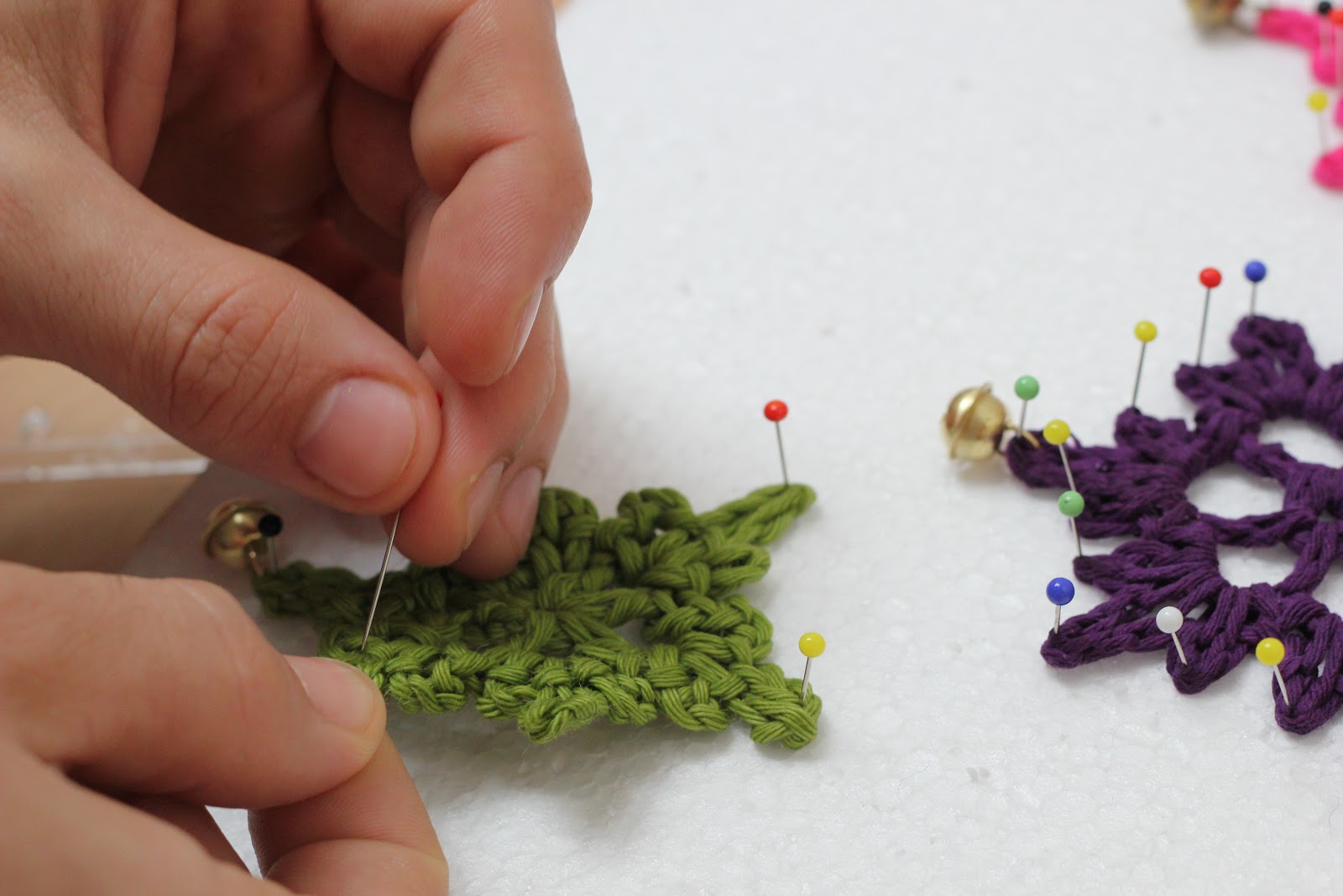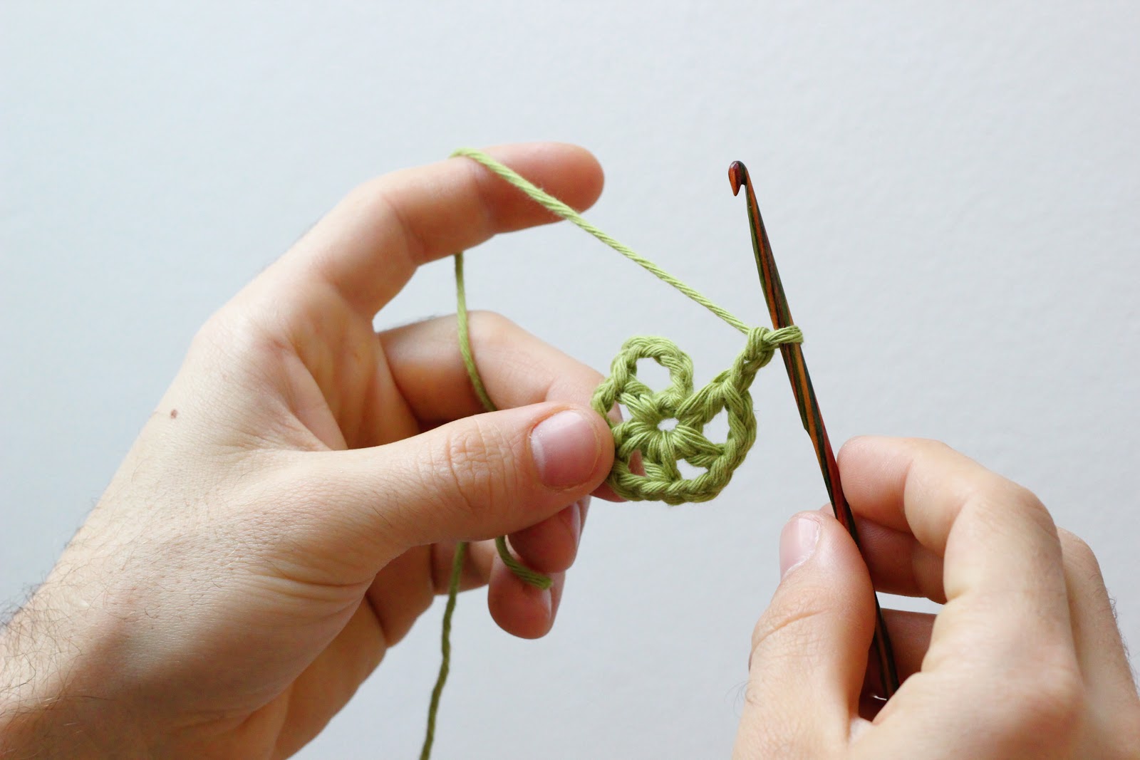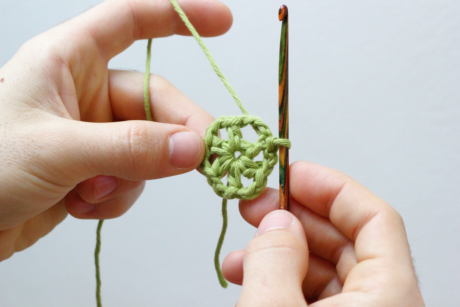 Round 1: Ch 4, 1 dtr in ring, ch 3. *2 dtr in ring, ch 3*. Repeat from * to * 4 more times. End with sl st in 4th ch of the first ch 4. Pull ring tight.