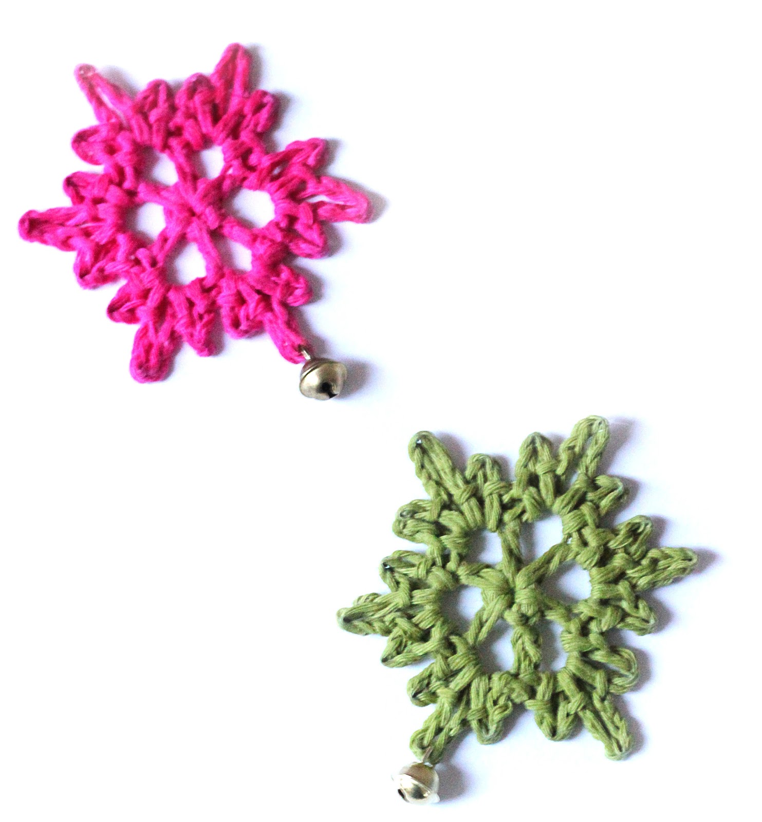 Round 5: *In ch 10 space: 1 sl st, ch 5, 1 dc, ch 3, 1 dc in 3rd ch from hook, 1 dc, ch 4, sl st in 2nd ch from hook, sl st in next 2 ch, 1 dc, ch 3, 1 dc in 3rd ch from hook, 1 dc, ch 5, 1 sl st. Sl st in first dc, 1 sc in next, ch 2, sl st in 2nd ch from hook, 1 sc in next dc, sl st in last dc*. Repeat from * to * around.
