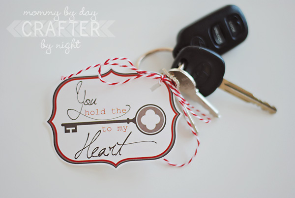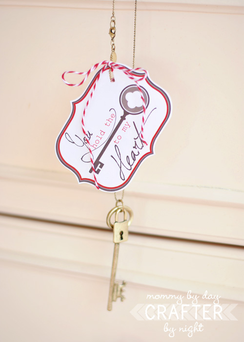 А эта идея возникла для подарка от моих девочек на День Святого Валентина для своей тети, которая живет в штате Теннесси прямо сейчас. Она любит ключи, поэтому, когда я увидела эти ключевые ожерелья я подумала, что это будет мило послать один с подарком тег, который сказал: "Вы держите ключ к моему сердцу"