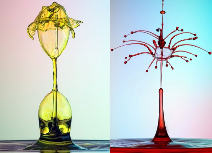 Оказывается, всплеск воды - это необычайно красивое явление, которое намного разнообразнее, нежели может представить наше воображение! Убедиться в этом помогает Маркус Реуглес, который как раз и создал фотосет на эту тему. Маркус капает подкрашенной водой на блюдца, а затем снимает в момент, когда вода разлетается от удара об поверхность. Вы можете быть свидетелями того, что получается в итоге: