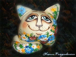 История этого котика заключается в том, что он идет навстречу к своей любимой кошечке.... Он решил по дороге нарвать ей букет полевых цветов... в знак своей любви...