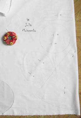 здесь я уже перевела выкройки на ткань, которую сложила пополам